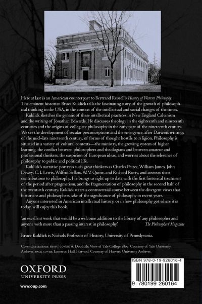 Kuklick sketches the genesis of these intellectual practices in New England Calvinism and the writing of Jonathan Edwards. He discusses theology in the 18th and 19th centuries and the origins of collegiate philosophy in the early part of the 19th century. We see the development of secular preconceptions and the emergence, after Darwin`s writings of the mid-late 19th century, of forms of thought hostile to religion.