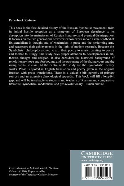 This book is the first detailed history of the Russian Symbolist movement, from its initial hostile reception as a symptom of European decadence to its absorption into the mainstream of Russian literature, and eventual disintegration. It focuses on the two generations of writers whose work served as the seedbed of Existentialism in thought and of Modernism in prose and the performing arts, and reassesses their achievements in the light of modern research. At the centre of the study are the texts themselves, with prose quoted in English translation and poetry given in the original Russian with prose translations. There is a valuable bibliography of primary sources and an extensive chronological appendix. This book will fill a long-felt gap, and will be invaluable to students and teachers of Russian and comparative literature, Symbolism, Modernism, and pre-revolutionary Russian culture.