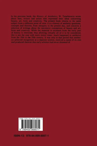 one. Art: History of the concept.- I. The early concept of art.- II. The transformation in modern times.- III. The fine arts.- IV. New disputes over the scope of art.- V. Disputes over the concept of art.- VI. Renunciation of definition.- VII. An alternative definition.- VIII. Definition and theories.- IX. The present.- two. Art: History of classification.- I. Division of all the arts (Antiquity).- II. Division of the liberal and mechanical arts (Middle Ages).- III. Search for a new division (Renaissance).- IV. Division of the arts into fine and mechanical (The Enlightenment).- V. Division of the fine arts (Recent times).- three. Art: History of the relation of art to poetry.- I. Our concepts of art and Greek concepts.- II. The concept of art.- III. The concept of poetry.- IV. The concept of beauty.- V. The concept of creativity.- VI. Apate, Ratharsis, mimesis.- VII. Plato: Two kinds of poetry.- VIII. Aristotle: First approximation of poetry to art.- IX. Hellenism: Second approximation of poetry to art.- X. The Middle Ages: Renewed separation of poetry and art.- XI. Modern times: Final approximation of poetry to art.- XII. New separation of poetry and painting.- four. Beauty: History of the concept.- I. The evolution of the concept.- II. The Great Theory.- III. Supplementary theses.- IV. Reservations.- V. Other theories.- VI. Crisis of the Great Theory.- VII. Other eighteenth-century theories.- VIII. After the crisis.- IX. Second crisis.- X. In conclusion.- five. Beauty: History of the category.- I. The varieties of beauty.- II. Aptness.- III. Ornament.- IV. Comeliness.- V. Grace.- VI. Subtlety.- VII. Sublimity.- VIII. A dual beauty.- IX. Orders and styles.- X. Classical beauty.- XI. Romantic beauty.- six. Beauty: the dispute between objectivism and subjectivism.- I. Antiquity.- II. Middle Ages.- III. Renaissance.- IV. Baroque.- V. The Enlightenment.- seven. Form: History of one term and five concepts.- I. History of form A.- II. History of form B.- III. History of form C.- IV. History of form D (Substantial form).- V. History of form E (A priori form).- VI. History of other forms.- VII. New concepts of form.- eight. Creativity: History of the concept.- I. Art seen without creativity.- II. History of the term.- III. History of the concept.- IV. Creatio ex nihilo.- V. Contemporary concept of creativity.- VI. Pancreationism.- VII. The artist's creativity.- nine. Mimesis: History of the relation of art to reality.- I. History of the concept of 'mimesis'.- II. Other theories of the past.- III. Some history of the concept of realism.- ten. Mimesis: History of the relation of art to nature and truth.- I. Art and nature.- II. Art and truth.- eleven. The aesthetic experience: History of the concept.- I. Early history.- II. Age of the Enlightenment.- III. The last hundred years.- IV. The legacy.- Conclusion.- Index of names.