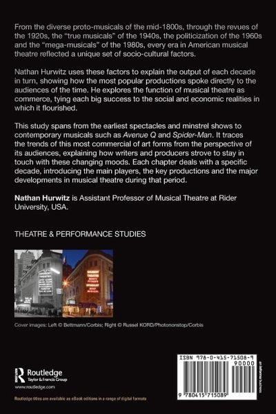 Nathan Hurwitz uses these factors to explain the output of each decade in turn, showing how the most popular productions spoke directly to the audiences of the time. He explores the function of musical theatre as commerce, tying each big success to the social and economic realities in which it flourished.