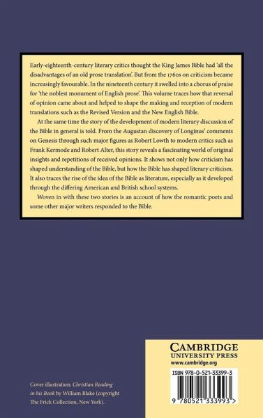 Early-eighteenth-century literary critics thought the King James Bible had 'all the disadvantages of an old prose translation'. But from the 1760s on criticism became increasingly favourable. In the nineteenth century it welled into a chorus of praise for 'the noblest monument of English prose'. This 1993 volume, the second of a two-volume work, traces how that reversal of opinion came about and helped to shape the making and reception of modern translations such as the Revised Version and the New English Bible. At the same time the story of the development of modern literary discussion of the Bible in general is told. From the Augustan discovery of Longinus' comments on Genesis through such major figures as Robert Louth to modern critics such as Frank Kermode and Robert Alter, this story reveals a fascinating world of insights and repetitions of received opinions. It shows not only how criticism has shaped understanding of the Bible, but how the Bible has shaped literary criticism.