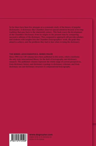In the literature on English lexicography there have been few attempts at a systematic study of the history of popular dictionaries that have been around for many years in English-speaking countries. A dictionary like Chambers deserves special attention because of its long tradition that goes back to the nineteenth century. Although it has gone through numerous editions, its history has received little attention from scholars. The book traces the development of the Chambers Dictionary from its origins to the present time by comparing corresponding parts of successive editions of the dictionary. This comparative approach aims to determine major trends in the evolution of the dictionary. It will provide scholars and interested students with insights into the Chambers lexicographers' work, the goals they aimed to achieve, and the problems they had to face when revising the dictionary.
