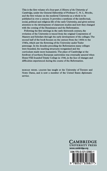 This is the first volume of a four-part History of the University of Cambridge, under the general editorship of Professor C. N. L. Brooke, and the first volume on the medieval university as a whole to be published in over a century. It provides a synthesis of the intellectual, social, political and religious life of the early university, and gives serious attention to the development of classroom studies and how they changed with the coming of the Renaissance and the Reformation. Following the first stirrings in the early thirteenth century, the evolution of the university is traced from the original corporation of masters and scholars through the early development of the colleges. The second half of the book focuses on the century from the 1440s to the 1540s, which saw the flowering of the university under Tudor patronage. In the decades preceding the Reformation many colleges were founded, the teaching structures reorganised and the curriculum made more humanistic. The place of Cambridge at the forefront of northern European universities was eventually assured when Henry VIII founded Trinity College in 1546, in the face of changes and difficulties experienced during the course of the Reformation.