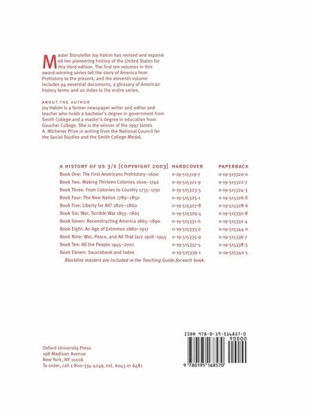 Joy Hakim, a former teacher, editor, and writer won the prestigious James Michener Prize for her series, A History of US, which has sold over 4 million copies nationwide. A graduate of Smith College and Goucher College she spent years teaching students from elementary school up to the college level. She also served as an Associate Editor at Norfolk's Virginian-Pilot, and was an Assistant Editor at McGraw-Hill's World News.