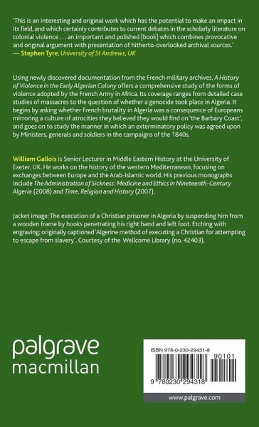 "Violence in its many forms, and colonial violence in particular, has been the focus of a wave of recent scholarly literature. Stimulated, no doubt, by the violence and imperialist activities of the twenty-first century, much of which has occurred in former colonial territories, one question that has preoccupied scholars with an interest in the subject is the extent to which violence in colonial territories was genocidal. In his thoroughly researched, cogently argued contribution to this literature, William Gallois looks at violence during the early years of military rule in FrenchAlgeria. When examining periods of conquest, as the military period was, the problem arises as to how to untangle the activities of warfare from those of massacres or genocide. The question is complicated further by the ongoing scholarly debate as to what exactly constitutes genocide. Gallois addresses these difficulties head on, engaging with the recent scholarship on genocide and evaluating the different stages of French military action in the colony." - Patricia Lorcin, American Historical Review