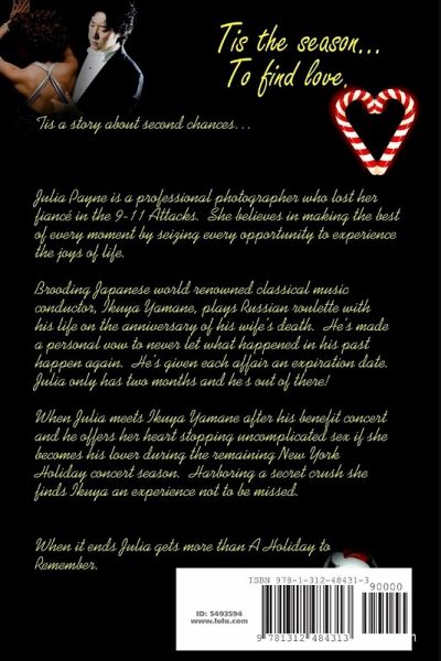 Julia Payne is a professional photographer who lost her fiancé in the 9-11 Attacks. She believes in making the best of every moment by seizing every opportunity to experience the joys of life. Brooding Japanese world renowned classical music conductor, Ikuya Yamane, plays Russian roulette with his life on the anniversary of his wife's death. He's made a personal vow to never let what happened in his past happen again. He's given each affair an expiration date. Julia only has two months and he's out of there! When Julia meets Ikuya Yamane after his benefit concert and he offers her heart stopping uncomplicated sex if she becomes his lover during the remaining New York Holiday concert season. Harboring a secret crush she finds Ikuya an experience not to be missed. When it ends Julia gets more than A Holiday to Remember.