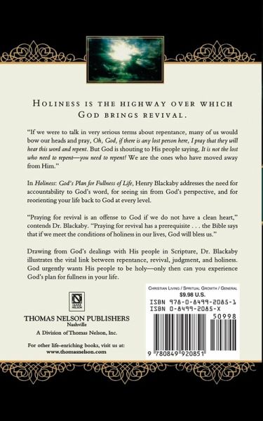 "If there is anything that characterizes God's people in America today, it is the loss of the fear of God," states Henry Blackaby. When you do not fear God, he contends, you will not fear sin. The troubling result of this issue is that many Christians fail to recognize that they have sinned against God. The lack of holiness within the Church has reached epidemic levels. "True revival can only come," notes Blackaby, "when the people of God return to a healthy, holy fear of Him." God, in His holiness, is grieved by our lack of it. In this worthy book, Blackaby urges believers to look inward, to see sin from God's perspective, and to live to the standard that He has set in Scripture. He writes, "The salvation of the nation has little to do with Washington or Hollywood-it has to do with the people of God!" As referenced in 2 Chronicles 7:14, Blackaby notes that the redemption of America lies in the repentance of the people of God. He challenges readers by adding, "If America depended on your prayer life, would there be revival?" Revival waits on the holiness of His people; this book provides the path that will lead us back.