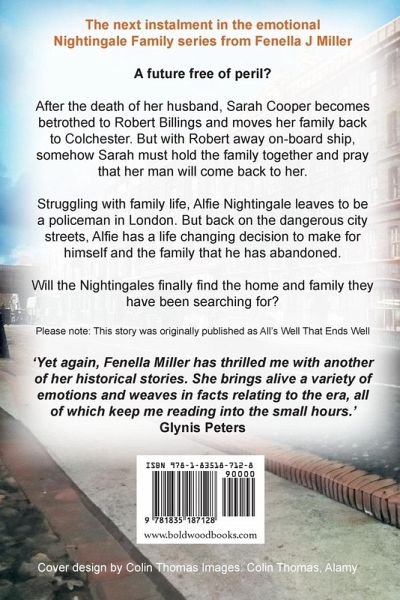 Don't miss the next instalment in the emotional Nightingale Family series from bestselling author, Fenella J Miller A future free of peril? After the death of her husband, Sarah Cooper becomes betrothed to Robert Billings and moves her family back to Colchester. But with Robert away on-board ship, somehow Sarah must hold the family together and pray that her man will come back to her. Struggling with family life, Alfie Nightingale leaves to be a policeman in London. But back on the dangerous city streets, Alfie has a life changing decision to make for himself and the family that he has abandoned. Will the Nightingales finally find the home and family they have been searching for? A gripping and authentic tale of courage during bleak times, perfect for fans of Lizzie Lane, Patricia McBride and Rosie Clarke. Praise for Fenella J. Miller: 'Yet again, Fenella Miller has thrilled me with another of her historical stories. She brings alive a variety of emotions and weaves in facts relating to the era, all of which keep me reading into the small hours' Glynis Peters 'Curl up in a chair with Fenella J Miller's characters and lose yourself in another time and another place' Lizzie Lane 'Engaging characters and setting which whisks you back to the home front of wartime Britain. A fabulous series!' Jean Fullerton 'Loved every word of this book. Fenella is a great author and leaves her books with you wanting more. I can't wait to read the next one' ⭐️⭐️⭐️⭐️⭐️ Reader Review Please note: This story was originally published as All's Well That Ends Well