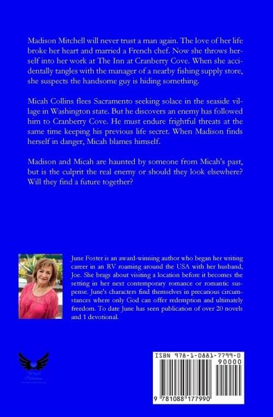 Madison Mitchell will never trust a man again. The love of her life broke her heart and married a French chef. Now she throws herself into her work at The Inn at Cranberry Cove. When she accidentally tangles with the manager of a nearby fishing supply store, she suspects the handsome guy is hiding something. Micah Collins flees Sacramento seeking solace in the seaside village in Washington state. But he discovers an enemy has followed him to Cranberry Cove. He must endure frightful threats at the same time keeping his previous life secret. When Madison finds herself in danger, Micah blames himself. Madison and Micah are haunted by someone from Micah's past, but is the culprit the real enemy or should they look elsewhere? Will they find a future together?