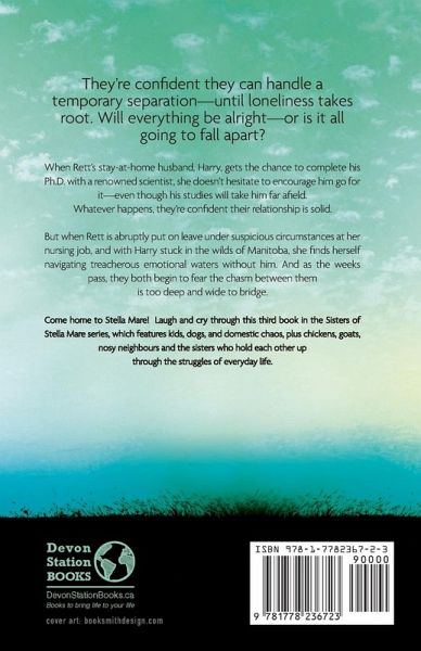 Rett and Harry are partners with a vision for their family. They know how they want to live. The only problem is doing it. Nurse Rett is used to being in charge. She's the Madison sister who can solve any problem. Her husband Harry's been the stay-at-home parent, juggling babies, meals, and playdates. When he gets the chance to finish his environmental studies with a researcher out West, both he and Rett are ready. He leaves amid fanfare and dreams for their family's future. But Rett's job goes south, money stops flowing in, and Harry's out of touch in a field camp in northern Manitoba. Rett handles things, moving her family back to Stella Mare and taking on chickens, goats, homesteading and homeschooling, but when she's accused of wrongdoing, her kids melt down with anxiety, and her handsome neighbour comes on strong, she falters. Harry's life in field camp is thrilling at first but soon becomes challenging. Conflict with his project manager, misdirection by the big boss, and the vast unending wilderness take a toll. Disconnected from home and his wife, it's hard to remember why he's even doing this. All he can think about is getting home, but he's not sure Rett will want him after what he's put them through. She's a purported murderer and unfaithful; he's a failed scientist with no ambition. Neither one feels worthy of the love of the other. This distance might be unbridgeable. This third volume in the Sisters of Stella Mare brings back the Madison sisters, holding each other up through the struggles of everyday life. Plus dogs, kids, chickens, goats and the pleasures of small-town life.
