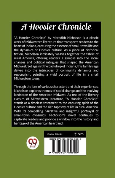 "A Hoosier Chronicle" by Meredith Nicholson is a classic work of Midwestern literature that transports readers to the heart of Indiana, capturing the essence of small-town life and the dynamics of Hoosier culture. As a piece of historical fiction, Nicholson intricately weaves together the fabric of rural America, offering readers a glimpse into the social changes and political intrigues that shaped the American Midwest. Set against the backdrop of Indiana, this family saga delves into the intricacies of community dynamics and regionalism, painting a vivid portrait of life in a small Midwestern town. Through the lens of various characters and their experiences, Nicholson explores themes of social change and the evolving landscape of the American Midwest. As one of the literary classics of Midwestern literature, "A Hoosier Chronicle" stands as a timeless testament to the enduring spirit of the Hoosier culture and the rich tapestry of life in rural America. With its compelling narrative and insightful portrayal of small-town dynamics, Nicholson's novel continues to captivate readers and provide a window into the history and heritage of the American heartland.