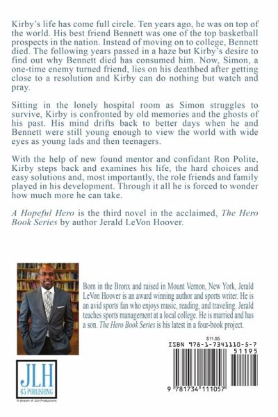 Kirby's life has come full circle. Ten years ago, he was on top of the world. His best friend Bennett was one of the top basketball prospects in the nation. Instead of moving on to college, Bennett died. The following years passed in a haze but Kirby's desire to find out why Bennett died has consumed him. Now, Simon, a one-time enemy turned friend, lies on his deathbed after getting close to a resolution and Kirby can do nothing but watch and pray. Sitting in the lonely hospital room as Simon struggles to survive, Kirby is confronted by old memories and the ghosts of his past. His mind drifts back to better days when he and Bennett were still young enough to view the world with wide eyes as young lads and then teenagers.With the help of new found mentor and confidant Ron Polite, Kirby steps back and examines his life, the hard choices and easy solutions and, most importantly, the role friends and family played in his development. Through it all he is forced to wonder how much more he can take.A Hopeful Hero is the third novel in the acclaimed, The Hero Book Series by author Jerald LeVon Hoover.