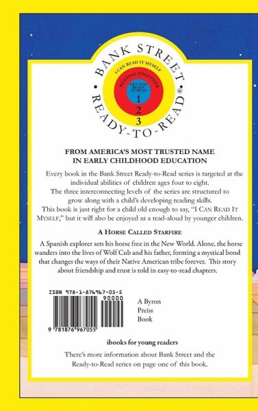 A Spanish explorer sets his horse free in the New World. Alone, the horse wanders into the lives of Wolf Cub and his father, forming a mystical bond that changes the ways of their Native American tribe forever. This story about friendship and trust is told in easy-to-read chapters. ¿FROM AMERICA'S MOST TRUSTED NAME IN EARLY CHILDHOOD EDUCATION More than seventy years of educational research and innovative teaching have given the Bank Street College of Education the reputation as America's most trusted name in early childhood education. Because no two children are exactly alike in their development, we have designed the Bank Street Ready-to-Read series in three levels to accommodate the individual stages of reading readiness of children ages four through eight. • Level 1: GETTING READY TO READ- (PRE-K to GRADE 1) Books are perfect for reading aloud with children who are getting ready to read or are just beginning to read words or phrases. • Level 2: READING TOGETHER-(GRADES 1 to 3) Books are written especiallly for children who are on their way to reading independently but who may need help. • Level 3: I CAN READ IT MYSELF-(GRADES 2 to 3) Books are designed for children able to read on their own. They also can be enjoyed as read-alouds.