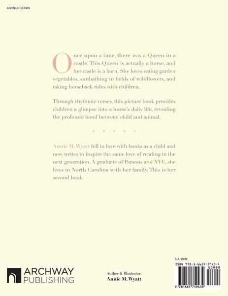 Once upon a time, there was a Queen in a castle. This Queen is actually a horse, and her castle is a barn. She loves eating garden vegetables, sunbathing in fields of wildflowers, and taking horseback rides with children. Through rhythmic verses, this picture book provides children a glimpse into a horse's daily life, revealing the profound bond between child and animal.