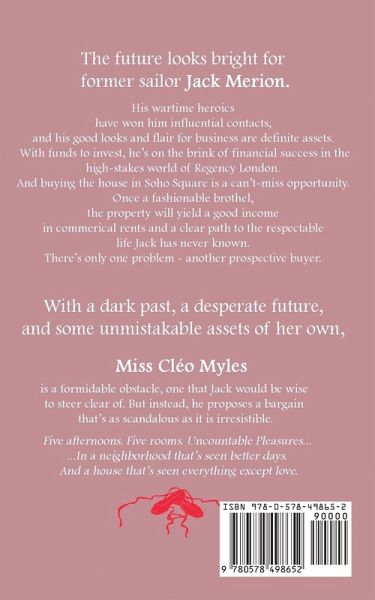The future looks bright for former sailor Jack Merion. His wartime heroics have won him influential contacts, and his good looks and flair for business are definite assets. With funds to invest, he's on the brink of financial success in the high-stakes world of Regency London. And buying the house in Soho Square is a can't-miss opportunity. Once a fashionable brothel, the property will yield a good income in commercial rents and a clear path to the respectable life Jack has never known. There's only one problem - another prospective buyer. With a dark past, a desperate future, and some unmistakable assets of her own, Miss Cléo Myles is a formidable obstacle, one that Jack would be wise to steer clear of. But instead, he proposes a bargain that's as scandalous as it is irresistible. Five afternoons. Five rooms. Uncountable pleasures... ...In a neighborhood that's seen better days. And a house that's seen everything except love.
