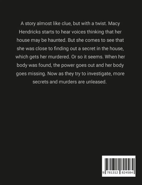 A story almost like clue, but with a twist. Macy Hendricks starts to hear voices thinking that her house may be haunted. But she comes to see that she was close to finding out a secret in the house, which gets her murdered. Or so it seems. When her body was found, the power goes out and her body goes missing. Now as they try to investigate, more secrets and murders are unleashed.