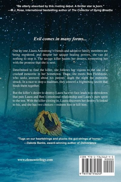 AMAZON TOP 20 BESTSELLER IN PARANORMAL SUSPENSE. AMAZON TOP 40 BEST SELLER IN SCIENCE FICTION. Evil comes in many forms... One by one, Laura Armstrong's friends and adoptive family members are being murdered, and despite her unique healing powers, she can do nothing to stop it. The savage killer haunts her dreams, tormenting her with the promise that she is next. Determined to find the killer, she follows her visions to the site of a crashed meteorite in her hometown. There, she meets Ben Fieldstone, who seeks answers about this parents' death the night the meteorite struck. In a race to stop a madman, they unravel a frightening secret that binds them together. But the killer's desire to destroy Laura face-to-face leads to a showdown that puts Laura and Ben's emotional relationship and Laura's pure spirit to the test. With the killer closing in, Laura discovers her destiny is linked to his, and she has two choices--redeem him or kill him. PRAISE FOR THE AUTHOR "Unrelenting, devious but full of heart. Highly recommended."--Jonathan Maberry, New York Times bestselling author of Code Zero "Be afraid. Be very afraid. And be utterly absorbed by this riveting debut. A thriller star is born."--M.J. Rose, International bestselling author of The Collector of Dying Breaths "Tugs on our heartstrings and plucks the gut-strings of horror. A true storyteller, highly reminiscent of Dean Koontz." --Dakota Banks, Award-winning author of the Mortal Path series "Chilling suspense. A dark and haunting novel. Enjoy the ride."--Kindle Book Review "A fast-paced paranormal suspense thriller that will keep you engrossed as you turn the pages. This suspenseful tale will stay with you long after you have read the last word."--Jersey Girl Book Reviews "A suspenseful ride through life and love...and death." -Janice Gable Bashman, Author of Predator "Such a beautiful, yet haunting debut novel." --Michael McCarty, Author of Lost Girl of the Lake "A thriller with a huge, aching heart. Galanti's rich and provocative thriller asks big questions. With her blending of romance, the coming of age quest, and the supernatural, she is a writer to watch, who will surely expand the diameters of the thriller genre." --Catherine Stine, Author of Fireseed One 1st Place Winner: Best Paranormal Romantic Suspense Series 2014 Paranormal Romance Guild Reviewer's Choice Awards
