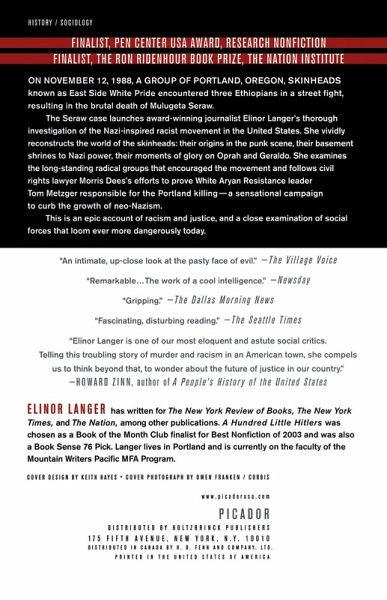 On November 12, 1988, a group of Portland, Oregon, skinheads known as East Side White Pride encountered three Ethiopians in a street fight, resulting in the brutal death of Mulugeta Seraw. For award-winning journalist Elinor Langer, the Seraw case is the launchpad for a thorough investigation of the Nazi-inspired racist movement in the United States. She vividly reconstructs the world of the skinheads: their origins in the punk scene, their basement shrines to Nazi power, their moments of glory on Oprah and Geraldo. She examines the long-standing radical groups that encouraged the movement, tracking the progress of such powerful figures as White Aryan Resistance leader Tom Metzger through key bastions of the Far Right. In gripping detail, she follows civil-rights lawyer Morris Dees's efforts to prove Metzger responsible for the Portland killing-a sensational campaign to curb the growth of neo-Nazism. Compelling, disturbing, and important, A Hundred Little Hitlers is both an epic account of racism and justice and a close examination of social forces that loom ever more dangerously today.