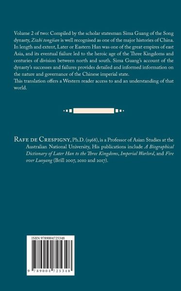 This is Volume 2 of a 2-volume set: Compiled by the scholar statesman Sima Guang of the Song dynasty, Zizhi tongjian is well recognised as one of the major histories of China. In length and extent, Later or Eastern Han was one of the great empires of east Asia, and its eventual failure led to the heroic age of the Three Kingdoms and centuries of division between north and south. Sima Guang's account of the dynasty's successes and failures provides detailed and informed information on the nature and governance of the Chinese imperial state. This translation offers a Western reader access to and an understanding of that world.