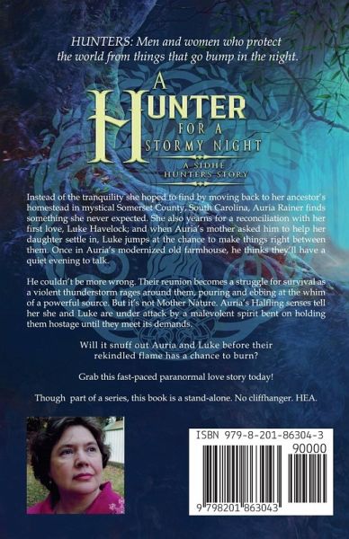 HUNTERS: Men and women who protect the world from things that go bump in the night. Instead of the tranquility she hoped to find by moving back to her ancestor's homestead in mystical Somerset County, South Carolina, Auria Rainer finds something she never expected. She also yearns for a reconciliation with her first love, Luke Havelock; and when Auria's mother asked him to help her daughter settle in, Luke jumps at the chance to make things right between them. Once in Auria's modernized old farmhouse, he thinks they'll have a quiet evening to talk. He couldn't be more wrong. Their reunion becomes a struggle for survival as a violent thunderstorm rages around them, pouring and ebbing at the whim of a powerful source. But it's not Mother Nature. Auria's Halfling senses tell her she and Luke are under attack by a malevolent spirit bent on holding them hostage until they meet its demands. Will it snuff out Auria and Luke before their rekindled flame has a chance to burn? Grab this fast-paced paranormal love story today! Though part of a series, this book is a stand-alone. No cliffhanger. HEA.
