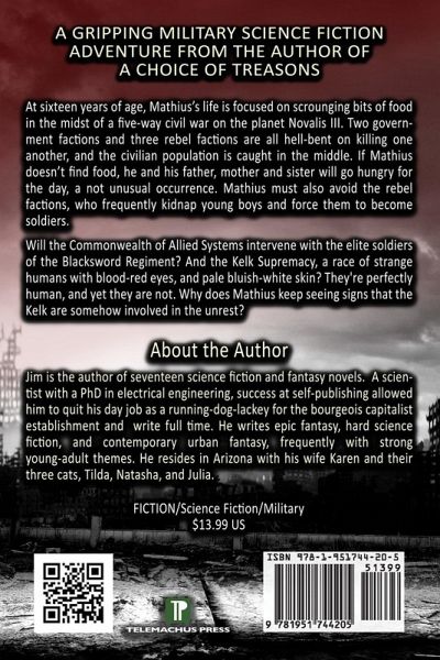 Praise for JL Doty's Sci-Fi: * "An excellent military SF novel, part Hornblower, part Wiggins. It had me from the first page and held on for the rest of them."-KEVIN J. ANDERSON, NEW YORK TIMES-BESTSELLING AUTHOR OF THE DARK BETWEEN THE STARS on OF TREASONS BORN * "A roller coaster ride of a story which is one of the best books I've read in years."-SFFWORLD on A CHOICE OF TREASONS For many the dying part is hard. For some the living part is even harder. At sixteen years of age, Mathius's life is focused on scrounging bits of food in the midst of a five-way civil war on the planet Novalis III. Two government factions and three rebel factions are all hell-bent on killing one another, and the civilian population is caught in the middle. If Mathius doesn't find food, he and his father, mother and sister will go hungry for the day, a not unusual occurrence. Mathius must also avoid the rebel factions, who frequently kidnap young boys and force them to become soldiers. Will the Commonwealth of Allied Systems intervene? And what of the Blacksword Regiment, the elite soldiers of the Commonwealth Security Corps? Will they sweep in and make everything right? And the Kelk Supremacy, a race of strange humans with blood-red eyes, and pale bluish-white skin? They're perfectly human, and yet they are not. Why does Mathius keep seeing signs that the Kelk are somehow involved in the unrest? A gripping saga of war and redemption. Order it now.