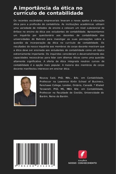 Os recentes escândalos empresariais levaram a novos apelos à educação ética para a profissão de contabilista. As instituições académicas utilizam uma variedade de métodos de ensino e colocam um nível substancial de ênfase no ensino da ética aos estudantes de contabilidade. Apresentamos um inquérito por questionário aos docentes de contabilidade das universidades do Bahrein para investigar as suas percepções sobre a questão da incorporação da ética no currículo de contabilidade. Os resultados do nosso inquérito aos membros do corpo docente mostram que a ética deve ser ensinada aos estudantes de contabilidade como um tópico extremamente importante. Os inquiridos consideram o desenvolvimento das capacidades necessárias para lidar com dilemas éticos como uma questão altamente significativa. A oferta de ética integrada noutros cursos de contabilidade é a opção mais popular. A maioria dos membros do corpo docente manifestou interesse em ensinar ética.