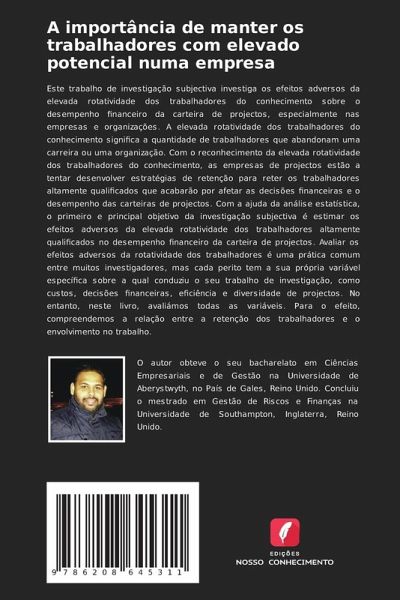 Este trabalho de investigação subjectiva investiga os efeitos adversos da elevada rotatividade dos trabalhadores do conhecimento sobre o desempenho financeiro da carteira de projectos, especialmente nas empresas e organizações. A elevada rotatividade dos trabalhadores do conhecimento significa a quantidade de trabalhadores que abandonam uma carreira ou uma organização. Com o reconhecimento da elevada rotatividade dos trabalhadores do conhecimento, as empresas de projectos estão a tentar desenvolver estratégias de retenção para reter os trabalhadores altamente qualificados que acabarão por afetar as decisões financeiras e o desempenho das carteiras de projectos. Com a ajuda da análise estatística, o primeiro e principal objetivo da investigação subjectiva é estimar os efeitos adversos da elevada rotatividade dos trabalhadores altamente qualificados no desempenho financeiro da carteira de projectos. Avaliar os efeitos adversos da rotatividade dos trabalhadores é uma prática comum entre muitos investigadores, mas cada perito tem a sua própria variável específica sobre a qual conduziu o seu trabalho de investigação, como custos, decisões financeiras, eficiência e diversidade de projectos. No entanto, neste livro, avaliámos todas as variáveis. Para o efeito, compreendemos a relação entre a retenção dos trabalhadores e o envolvimento no trabalho.