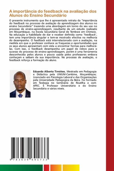 O presente instrumento que lhe é apresentado retrata da "importância do feedback no processo de avaliação da aprendizagem dos alunos no ensino Secundário" trazendo uma abordagem em torno do seu uso no processo de ensino-aprendizagem, resultante de um estudo realizado em Moçambique, na Escola Secundária Geral de Tembwe em Chimoio. Na educação a habilidade de dar e receber definida como 'feedback', tem uma importância singular e tem-se mostrado efectiva na melhoria do desempenho. O feedback está interrelacionado com a avaliação, na medida em que o professor conhece as fraquezas e oportunidades que os seus alunos apresentam com vista a encontrar formas para melhorá-las. Com isso, o feedback desempenha um papel de relevo para o sucesso do processo de ensino-aprendizagem, porém é uma ferramenta desconhecida pelos alunos e pouco usada pelos professores embora conheçam e saibam da sua importância. No processo de avaliação, o feedback reforça a formação do aluno.