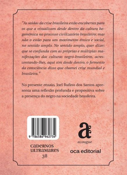Cadernos Ultramares seeks to present Brazilian culture and thought in a qualified way, through volumes bringing together important essays by renowned authors in different areas of knowledge. In this essay, the Afro-Brazilian historian Joel Rufino dos Santos, considered a reference on African culture in Brazil, presents a deep and propositive reflection on the presence of blacks in Brazilian society.