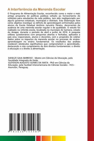 O Programa de Alimentação Escolar, reconhecido como o maior e mais antigo programa de políticas públicas voltado ao fornecimento de refeições para estudantes da rede pública, tem sido negligenciado por alguns governos estaduais, municipais e distritais. Esta dissertação teve como objetivo investigar os déficits de aprendizagem enfrentados pelos alunos da Escola Estadual Antônio Januário Pereira, decorrentes da ausência de uma merenda escolar regular e de qualidade. O estudo foi realizado na referida escola, localizada no município de Santana, estado do Amapá, durante o período de abril a junho de 2016. A pesquisa utilizou questionários com perguntas abertas e fechadas, aplicados a pais e/ou responsáveis, alunos e docentes, com o propósito de coletar dados sobre os impactos da merenda escolar no processo de ensino-aprendizagem no ensino fundamental. Os resultados das análises revelaram obstáculos significativos que comprometem o aprendizado, destacando o não cumprimento de dois direitos fundamentais: o direito à educação e o direito à alimentação.