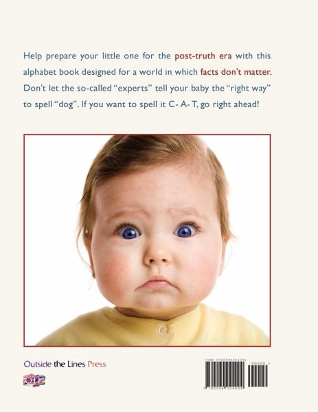 Help prepare your little one for the post-truth era with this alphabet book designed for a world in which facts don't matter. Don't let the so-called "experts" tell your baby the "right way" to spell "dog". If you want to spell it C- A- T, go right ahead!
