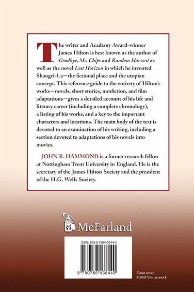 The writer and Academy Award-winner James Hilton is best known as the author of Goodbye, Mr. Chips and Random Harvest as well as the novel Lost Horizon in which he invented Shangri-La--the fictional place and the utopian concept. This reference guide to the entirety of Hilton's works--novels, short stories, nonfiction, and film adaptations--gives a detailed account of his life and literary career (including a complete chronology), a listing of his works, and a key to the important characters and locations. The main body of the text is devoted to an examination of his writing, including a section devoted to adaptations of his novels into movies.
