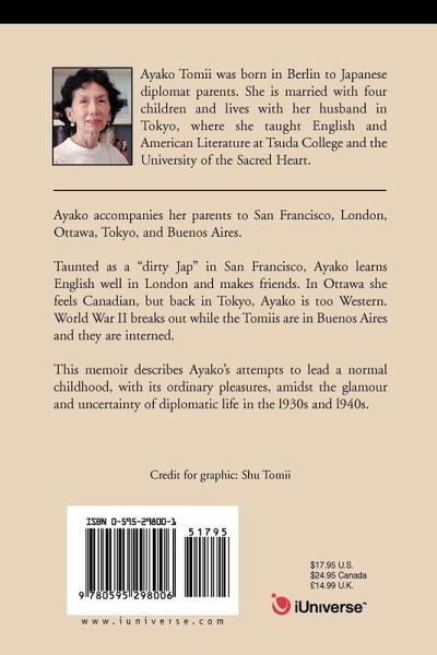 Ayako accompanies her parents to San Francisco, London, Ottawa, Tokyo, and Buenos Aires. Taunted as a "dirty Jap" in San Francisco, Ayako learns English well in London and makes friends. In Ottawa she feels Canadian, but back in Tokyo, Ayako is too Western. World War II breaks out while the Tomiis are in Buenos Aires and they are interned. This memoir describes Ayako's attempts to lead a normal childhood, with its ordinary pleasures, amidst the glamour and uncertainty of diplomatic life in the l930s and l940s.