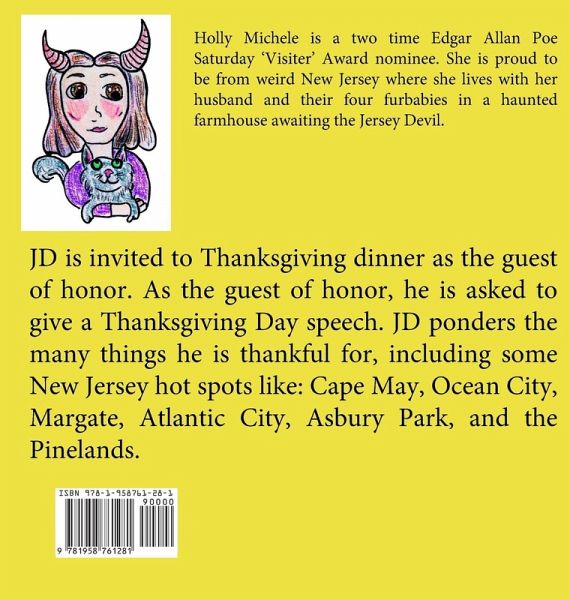 JD is invited to Thanksgiving dinner as the guest of honor. As the guest of honor, he is asked to give a Thanksgiving Day speech. JD ponders the many things he is thankful for, including some New Jersey hot spots like: Cape May, Ocean City, Margate, Atlantic City, Asbury Park, and the Pinelands. For ages four and up.