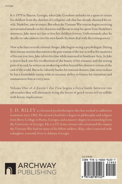 It is 1979 in Macon, Georgia, when Jake Goodson embarks on a quest to rescue his children from the clutches of a religious cult that has already charmed his ex-wife, Madeline, into its snares. But when the Vietnam War veteran begins receiving unwarranted attacks on his character and threats to stop his quest from Madeline's attorneys, Jake must act fast or lose his children forever. Unfortunately after he decides to take matters into his own hands, he must deal with the consequences. Now as he faces several criminal charges, Jake begins seeing a psychologist. During their intense sessions that resurrect the past trauma of the war as well as his memories of his one true love, Jake relives his time while stationed in Southeast Asia. As Jake is drawn back into his recollections of the beauty of his romance and the searing pain of its end, he notices an awakening within beyond his obsessive visions of the end of the world. But as he valiantly battles his internal demons, Jake soon realizes he has a formidable enemy with an uncanny ability to foresee his intentions and outmaneuver him at every turn. Volume One of A Jeweler's Eye View begins a fierce battle between two adversaries that will ultimately bring the forces of good versus evil to collide with heroic implications.