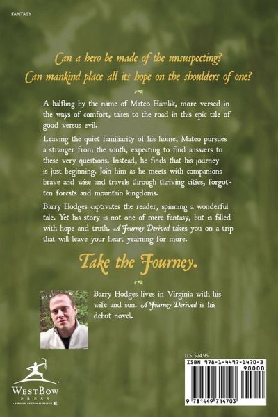 Can a hero be made of the unsuspecting? Can mankind place all its hope on the shoulders of one? A halfling by the name of Mateo Hamlik, more versed in the ways of comfort, takes to the road in this epic tale of good versus evil. Leaving the quiet familiarity of his home, Mateo pursues a stranger from the south, expecting to find answers to these very questions. Instead, he finds that his journey is just beginning. Join him as he meets with companions brave and wise and travels through thriving cities, forgotten forests and mountain kingdoms. Barry Hodges captivates the reader, spinning a wonderful tale. Yet his story is not one of mere fantasy, but is filled with hope and truth. A Journey Derived takes you on a trip that will leave your heart yearning for more. Take the Journey.