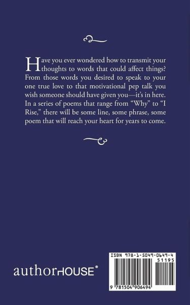 Have you ever wondered how to transmit your thoughts to words that could affect things? From those words you desired to speak to your one true love to that motivational pep talk you wish someone should have given you-it's in here. In a series of poems that range from "Why" to "I Rise," there will be some line, some phrase, some poem that will reach your heart for years to come.