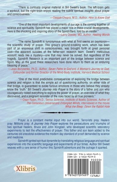 Prayer is a constant mental input into our world. Do we pray for what we need or what we want? Do we pray to heal or to hurt? Healers pray. Terrorists pray. Motivations for prayer are investigated by the Spindrift researchers. One discovery was that non goal-directed prayer--"Thy will be done"--produced different test results than goal-directed prayer. A Journey Into Prayer explores the struggles, triumphs, and persecutions of two spiritual healers, Bruce and John Klingbeil, who developed scientific laboratory tests to validate the effectiveness of prayer. This father and son team added to the centuries old anecdotal evidence the modern day standard of proof demanded by science and medicine. Spindrift translated some spiritual experiences and religious language into the scientific language and experiments of our times. Spindrift ignited spiritual dynamite. Author Bill Sweet weaves with a rare sense of humor this Spindrift adventure and the outrage it sparked. "The name Spindrift is synonymous with what at first seems an oxymoron--the scientific study of prayer. This group's ground-breaking work, which has been part of an enormous shift in consciousness, was brought forth at great personal cost--the apparent suicides of the father-son research team. Bill Sweet's meticulous account reads like a mystery--one that may never be solved. But regardless of the tragedy, the Spindrift research is an important part of the bridge between science and Spirit. May all the good these researchers have done return to them as an enduring blessing of peace."