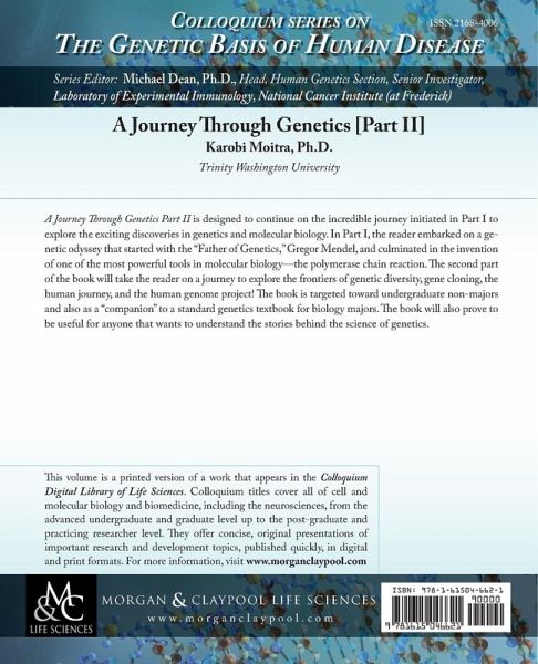 "A Journey Through Genetics Part II" is designed to continue on the incredible journey initiated in Part I to explore the exciting discoveries in genetics and molecular biology. In Part I, the reader embarked on a genetic odyssey that started with the "Father of Genetics," Gregor Mendel, and culminated in the invention of one of the most powerful tools in molecular biology-the polymerase chain reaction. The second part of the book will take the reader on a journey to explore the frontiers of genetic diversity, gene cloning, the human journey, and the human genome project! The book is targeted toward undergraduate non-majors and also as a "companion" to a standard genetics textbook for biology majors. The book will also prove to be useful for anyone that wants to understand the stories behind the science of genetics.
