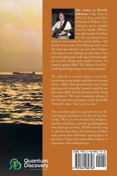 My name is Randy Johnson. I was born in 1952 to Ann and Jerry Johnson in Wilson, NC, and grew up in a simple country family. When I was old enough, I worked on my grandparents' farm to earn money for school clothes. My double first cousin, Don Pittman, and I were the same age and grew up more like brothers. (Our parents were siblings on both sides.) Don learned to play guitar at the age of 10 and taught me as well. Along with another cousin, we formed a group called "The Tobacco Trail Trio," marking the beginning of our music journey. We played at various places until the harvesting season ended, and then we returned home. Sadly, Don passed away, but I kept playing and eventually formed a band in my late teens called "Randy Johnson and the Young Countrymen." We even recorded an album in the 70s and were contestants on the Nashville Network's show "You Can Be a Star." The years have gone by, and now in my 70s, I'm happily married to the love of my life, Linda. We have two wonderful children, Jennifer and Jamie, and two granddaughters who light up our lives. While I mostly sing in church these days, the memories of those early music days still hold a special place in my heart. I hope this book allows others to experience those moments too.