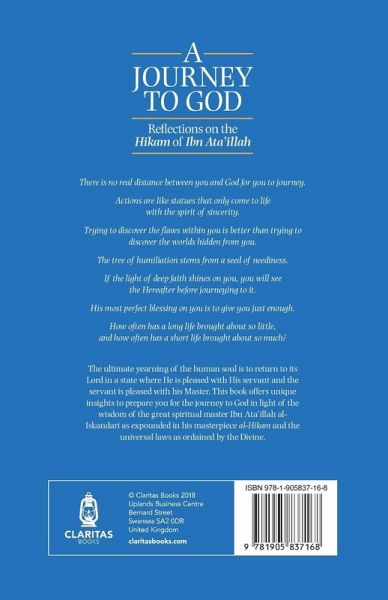 * There is no real distance between you and God for you to journey. * Actions are like statues that only come to life with the spirit of sincerity. * Trying to discover the flaws within you is better than trying to discover the worlds hidden from you. * The tree of humiliation stems from a seed of neediness. * If the light of deep faith shines on you, you will see the Hereafter before journeying to it. * His most perfect blessing on you is to give you just enough. * How often has a long life brought about so little, and how often has a short life brought about so much? The ultimate yearning of the human soul is to return to its Lord in a state where He is pleased with His servant and the servant is pleased with his Master. This book offers unique insights to prepare you for the journey to God in light of the wisdom of the great spiritual master Ibn Ata'illah al-Iskandari as expounded in his masterpiece al-Hikam and the universal laws as ordained by the Divine.