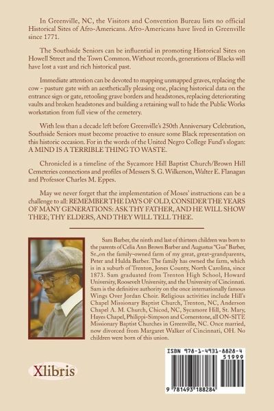 In Greenville, NC, the Visitors and Convention Bureau lists no official Historical Sites of Afro-Americans. Afro-Americans have lived in Greenville since 1771. The Southside Seniors can be influential in promoting Historical Sites on Howell Street and the Town Common. Without records, generations of Blacks will have lost a vast and rich historical past. Immediate attention can be devoted to mapping unmapped graves, replacing the cow - pasture gate with an aesthetically pleasing one, placing historical data on the entrance sign or gate, retooling grave borders and headstones, replacing deteriorating vaults and broken headstones and building a retaining wall to hide the Public Works workstation from full view of the cemetery. With less than a decade left before Greenville's 250th Anniversary Celebration, Southside Seniors must become proactive to ensure some Black representation on this historic occasion. For in the words of the United Negro College Fund's slogan: A Mind Is A Terrible Thing To Waste. Chronicled is a timeline of the Sycamore Hill Baptist Church/Brown Hill Cemeteries connections and profiles of Messers S. G. Wilkerson, Walter E. Flanagan and Professor Charles M. Eppes. May we never forget that the implementation of Moses' instructions can be a challenge to all: Remember The Days Of Old, Consider The Years Of Many Generations: Ask Thy Father, And He Will Show Thee; Thy Elders, And They Will Tell Thee.