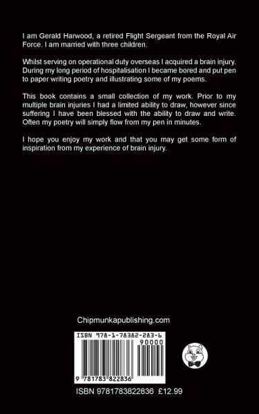 I am Gerald Harwood, a retired Flight Sergeant from the Royal Air Force. I am married with three children. Whilst serving on operational duty overseas I acquired a brain injury. During my long period of hospitalisation I became bored and put pen to paper writing poetry and illustrating some of my poems. This book contains a small collection of my work. Prior to my multiple brain injuries I had a limited ability to draw, however since suffering I have been blessed with the ability to draw and write. Often my poetry will simply flow from my pen in minutes. I hope you enjoy my work and that you may get some form of inspiration from my experience of brain injury.