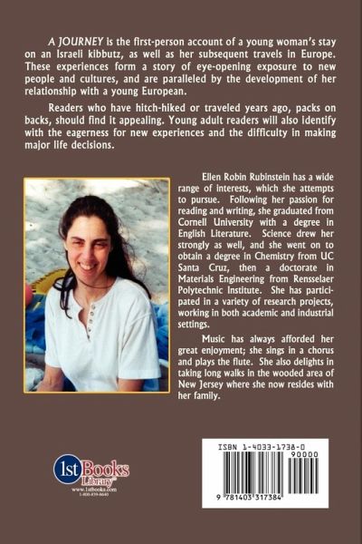 A JOURNEY is the first person account of a young American woman's stay on an Israeli Kibbutz and her subsequent travels in Europe. These experiences form a story of eye-opening exposure to new people and cultures.