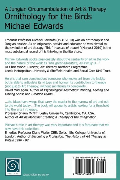 Originator, innovator, activist and educator, Emeritus Professor Michael Edwards was central to the international evolution of art therapy. These previously unpublished papers are the most substantial written record of his thinking. Highly praised by leading figures in art psychotherapy, Professor Shaun McNiff wrote '...the ideas have wings that carry the reader inside to the marrow of art... The book will appeal to artists looking for a threshold into the arts in therapy'. Rejection of reductionism and fundamentalism made Edwards a champion of soul, a challenger of simple mindedness. Widely honoured as an art therapist, educator, supervisor and Jungian analyst this book appropriately reflects Edwards achievements. The humour, wisdom and idiosyncrasy of the writer has been preserved in the careful editing by Learmonth & Huckvale of these transcribed talks. The book is beautifully illustrated with some of Edward's favourite artworks, the 'Talepieces' from Thomas Bewick's Birds.