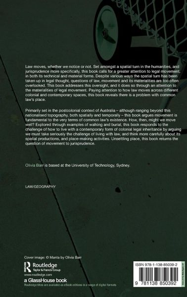 Set amongst a spatial turn in the humanities, and jurisprudence more specifically, this book calls for a greater attention to legal movement, in both its technical and material forms. Despite the various ways in which the spatial turn has been taken up in legal thought, questions of law, movement and its materialities are too often overlooked. This book addresses this oversight, and it does so through an attention to the materialities of legal movement. Arguing that movement is fundamental to the very terms of the common law's existence, taking as an example the judicial practices of walking and burial, it addresses how law moves through patterns of technical and material practice
