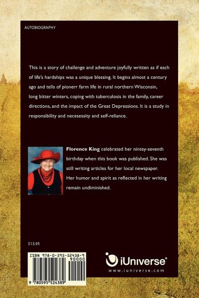 This is a story of challenge and adventure joyfully written as if each of life's hardships was a unique blessing. It begins almost a century ago and tells of pionerr farm life in rural northern Wisconsin, long bitter winters, coping with tuberculosis in the family, career directions, and the impact of the Great Depressions. It is a study in responsibility and necesessity and self-reliance.