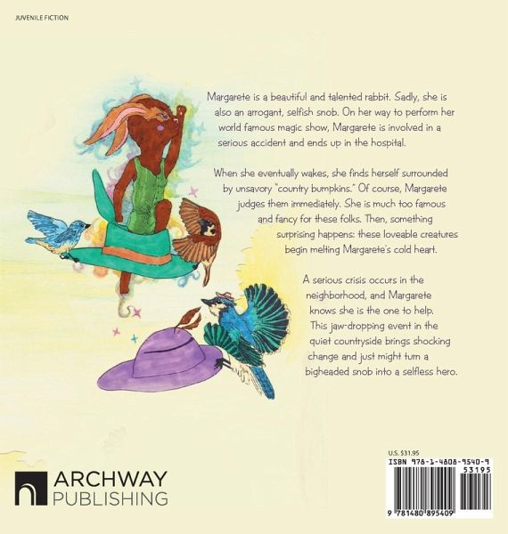 Margarete is a beautiful and talented rabbit. Sadly, she is also an arrogant, selfish snob. On her way to perform her world famous magic show, Margarete is involved in a serious accident and ends up in the hospital. When she eventually wakes, she finds herself surrounded by unsavory "country bumpkins." Of course, Margarete judges them immediately. She is much too famous and fancy for these folks. Then, something surprising happens: these loveable creatures begin melting Margarete's cold heart. A serious crisis occurs in the neighborhood, and Margarete knows she is the one to help. This jaw-dropping event in the quiet countryside brings shocking change and just might turn a bigheaded snob into a selfless hero.