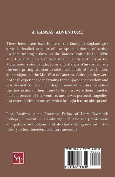 These letters sent back home to the family in England give a vivid, detailed account of the ups and downs of setting up and running a farm on the Kansas prairie in the 1880s and 1890s. Due to a setback in the family fortunes in the Manchester cotton trade, John and Marian Whitworth made the enterprising decision to take their family of five children and emigrate to the Mid West of America. Although they were not at all experienced in farming they enjoyed the freedom and less stressed country life. Despite many difficulties including the destruction of their house by fire, they were determined to make a success of this venture, and it was personal tragedies, not external circumstances, which brought it to an abrupt end.
