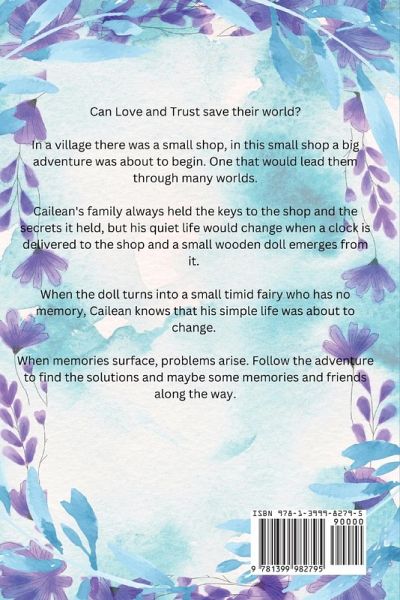 Scottish and Irish Folklore based characters,who go on multiple adventures, through perilous valleys, to lovable forests. The characters will make you love them and question their choice all at the same time. Can Love and Trust save their world? In a village there was a small shop, in this small shop a bug adventure was about to begin. One that would lead them thought many worlds. Cailean's family always held the keys to the shop and the secrets it held, but his quiet life would change when a clock is delivered to the shop and a small wooden doll emerges from it. When the doll turns into a small timid fairy who has no memory, Cailean knows that his simple life was about to change. When memories surface, problems arise, Follow the adventure to find the solutions and maybe some memories and friends along the way. Full Name Pronunciation, Playlist and Folklore are in the back of the book.